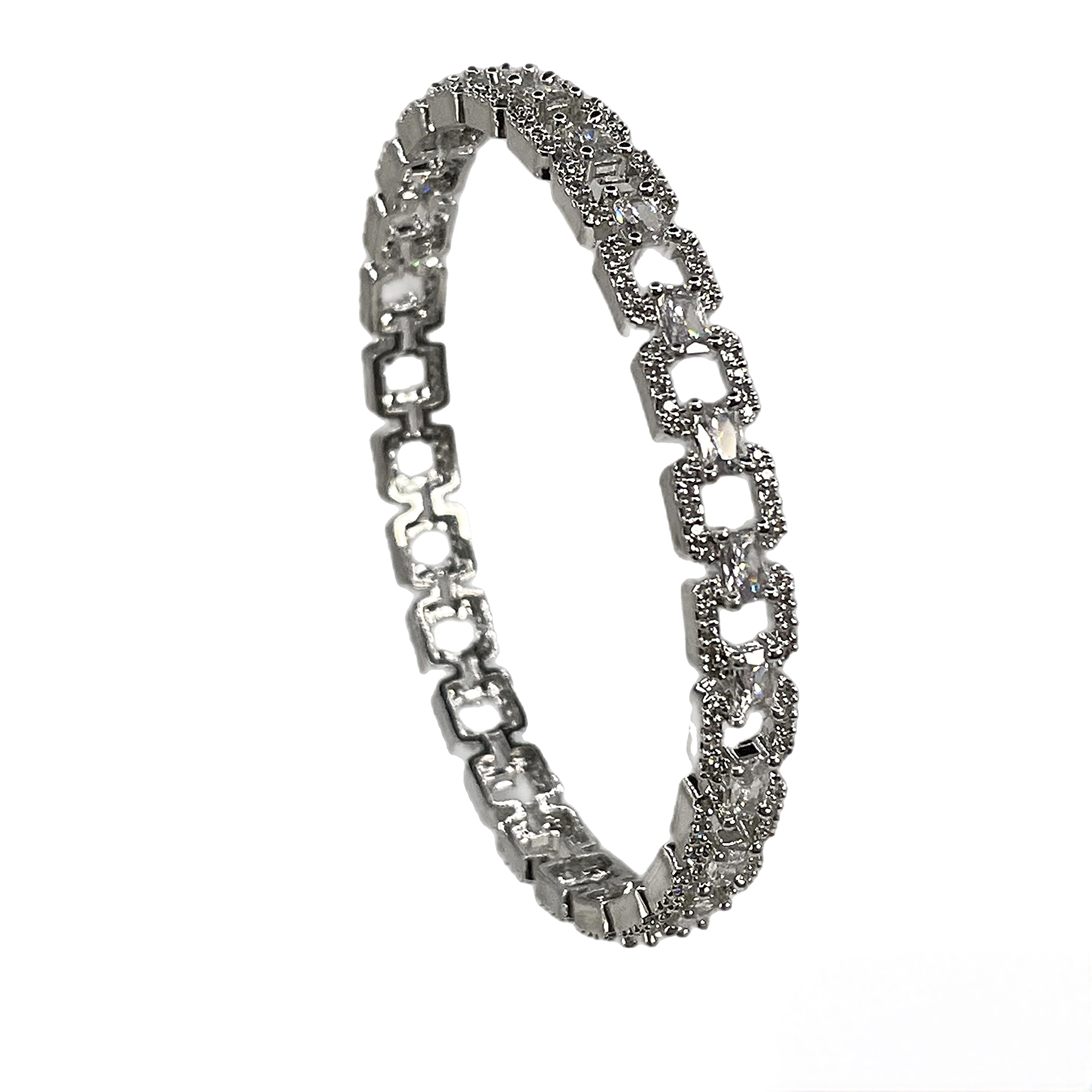 Серебристый браслет из ювелирной стали, украшен стразами кубического циркония