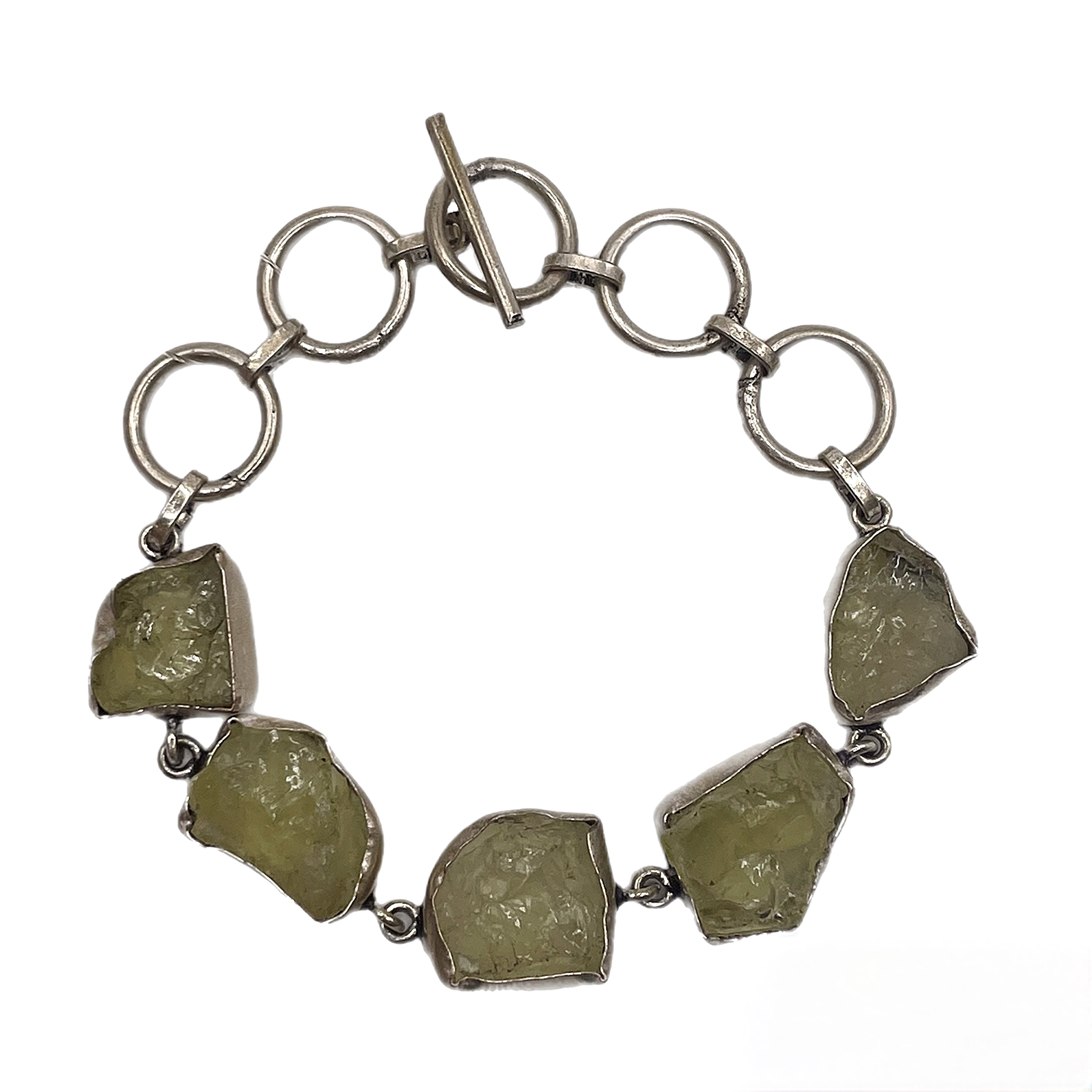 Посеребренный браслет из ювелирной стали и вставками из натуральных, необработанных камней