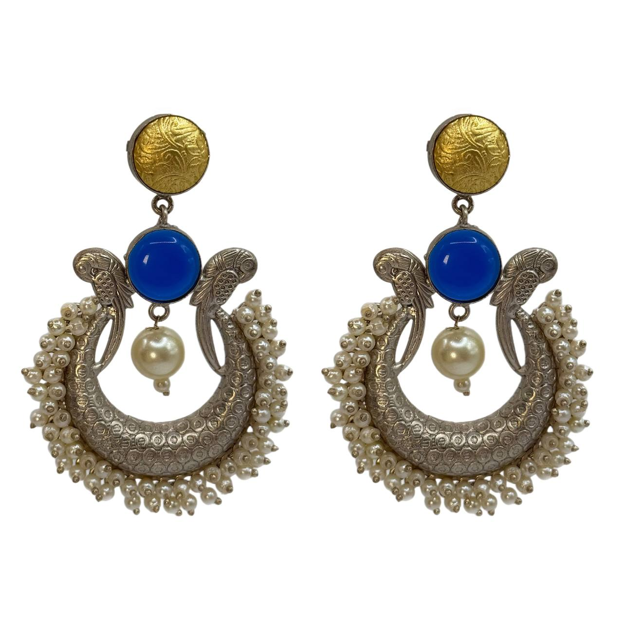 Серьги с синим натуральным камнем и жемчужными бусинами