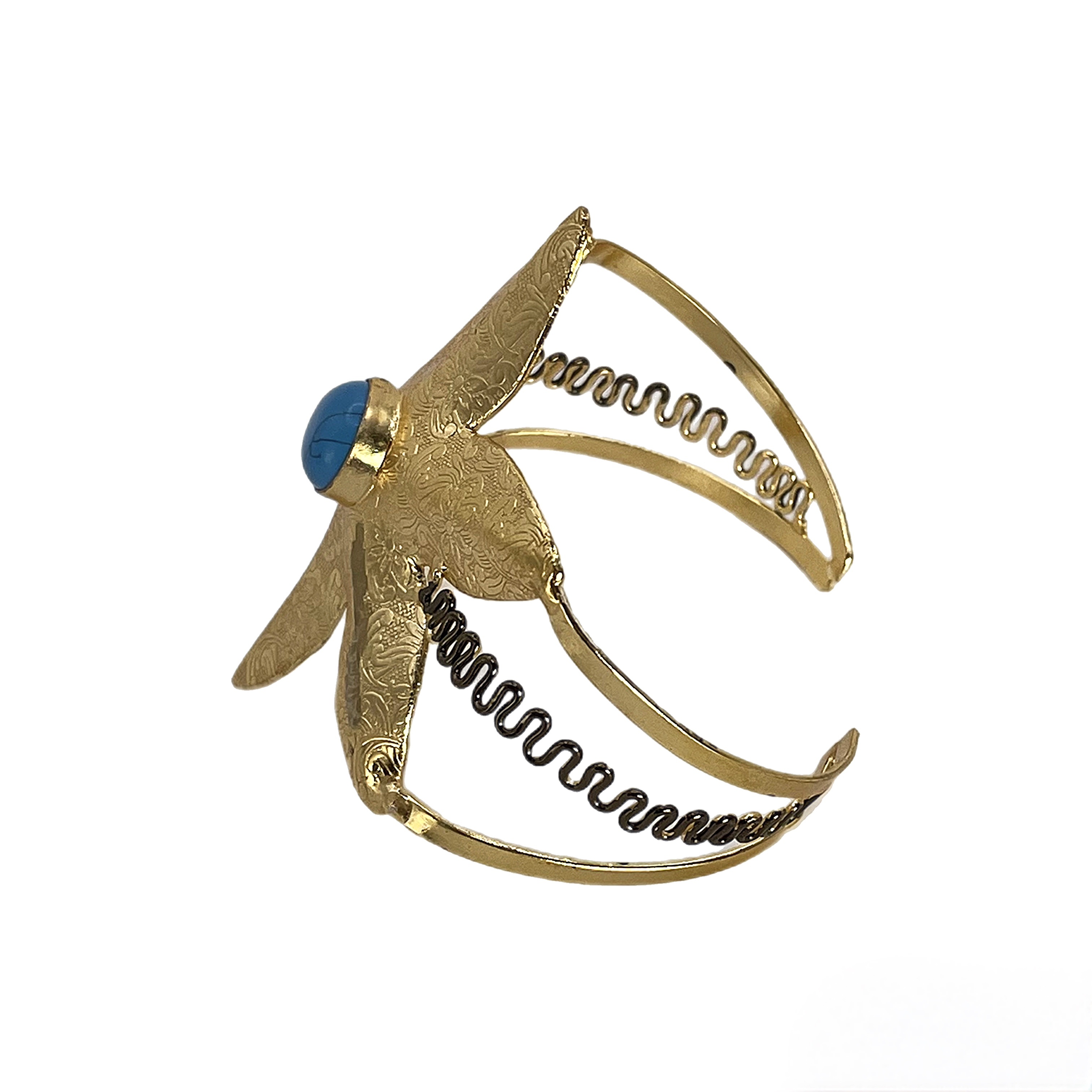 Позолоченный браслет в виде цветка, из меди, с камнем дуплетом