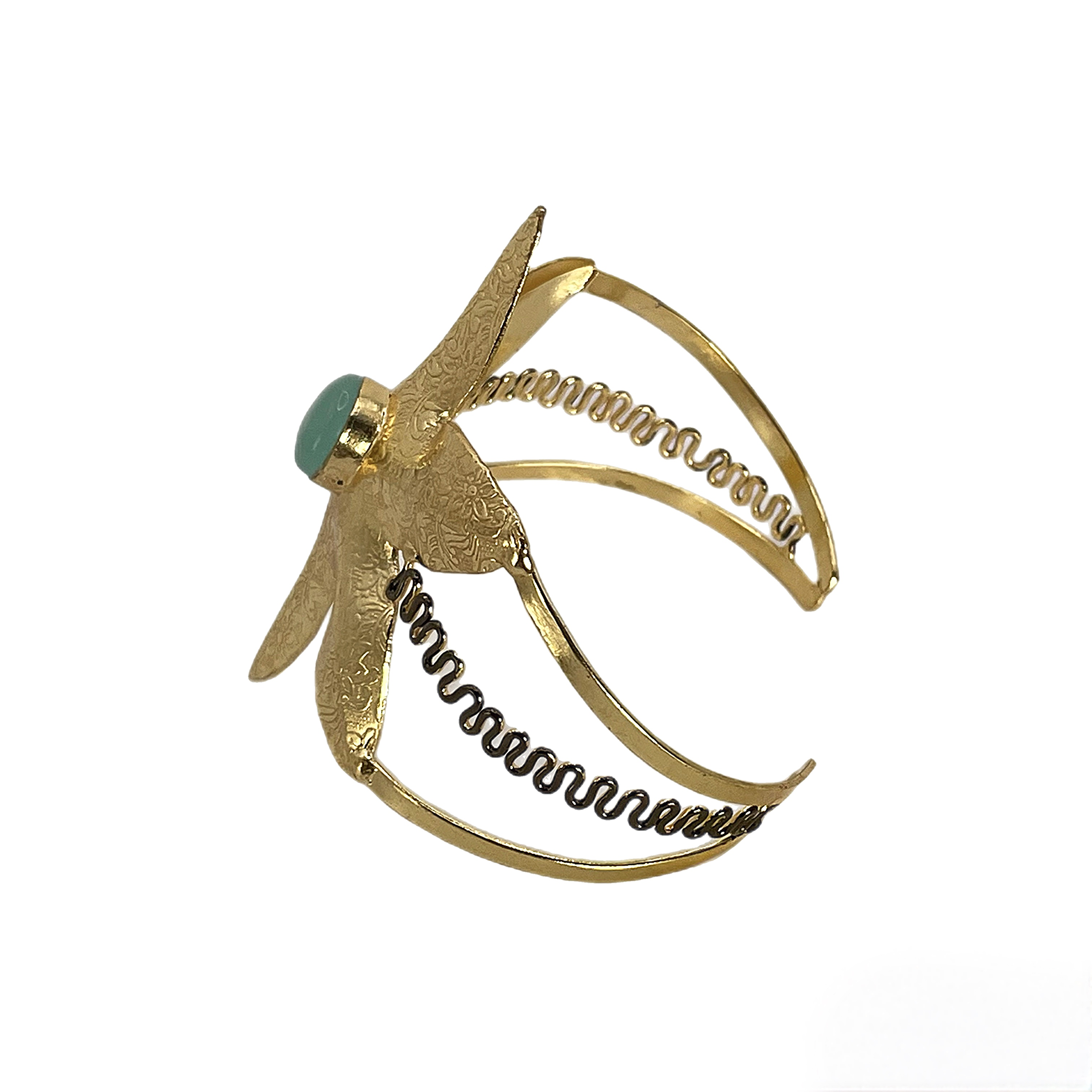 Позолоченный браслет в виде цветка, из меди, с камнем дуплетом