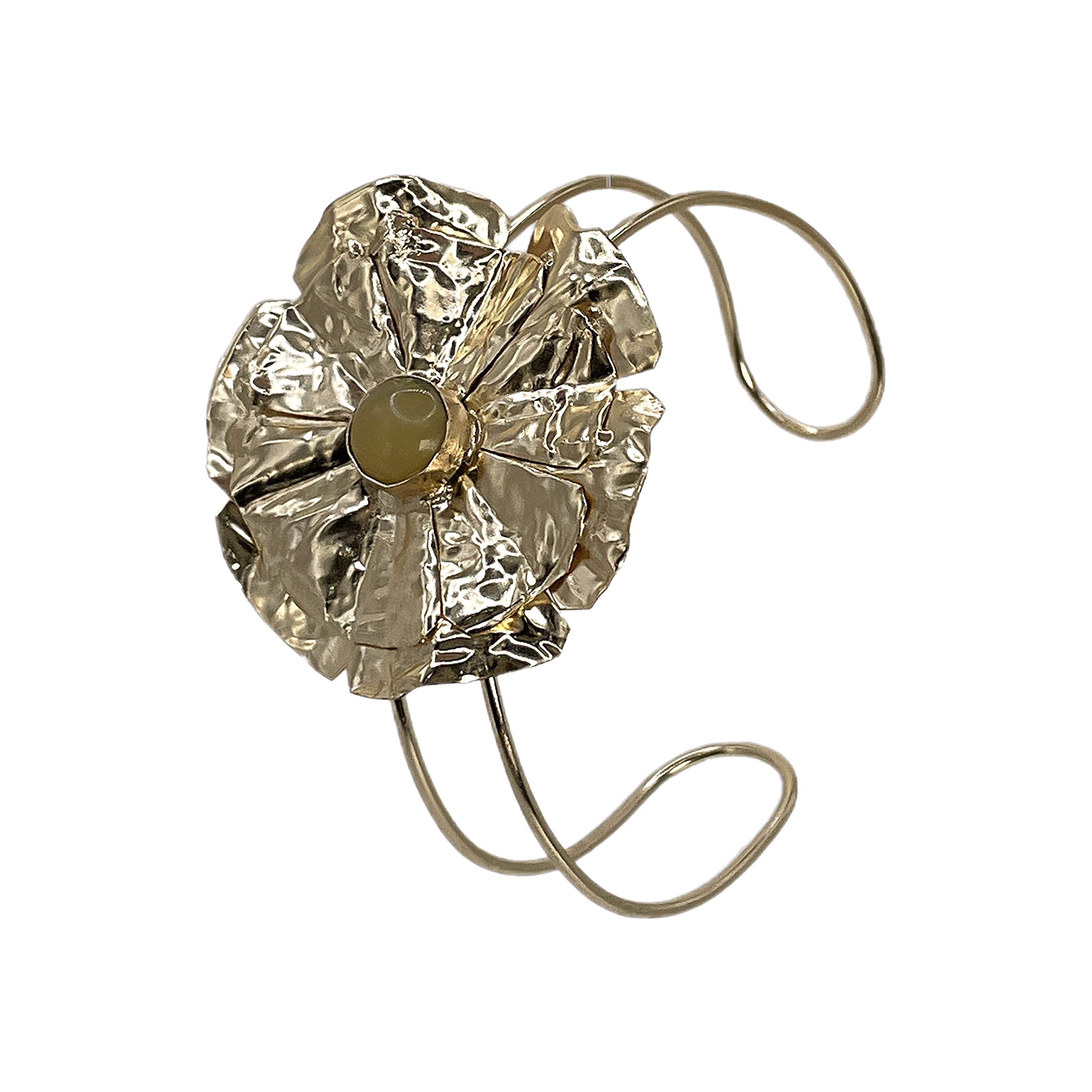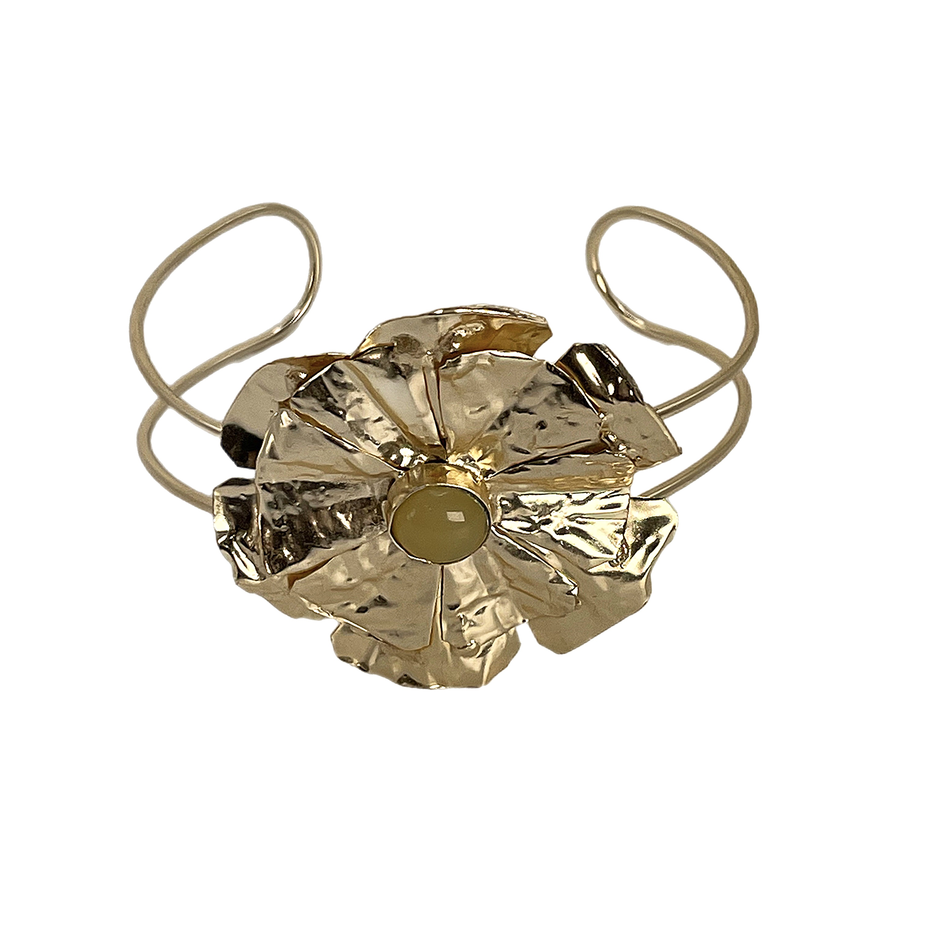 Позолоченный браслет в виде цветка, из латуни, с натуральным камнем