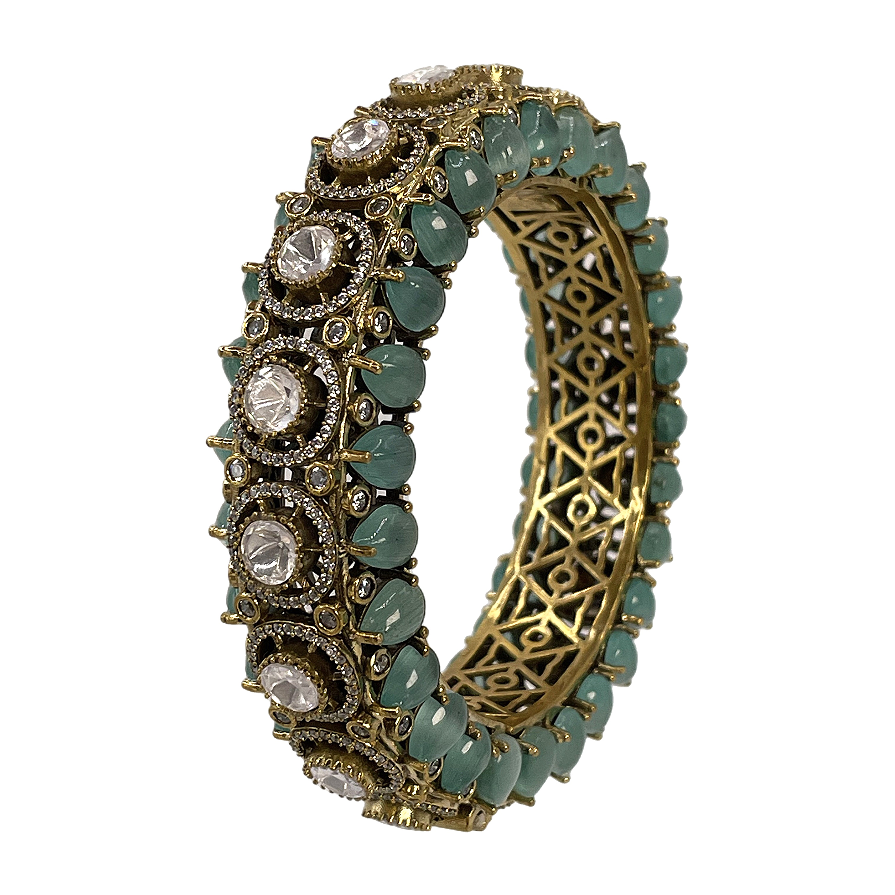 Браслет из латуни, инкрустированным цирконием и горным хрусталем