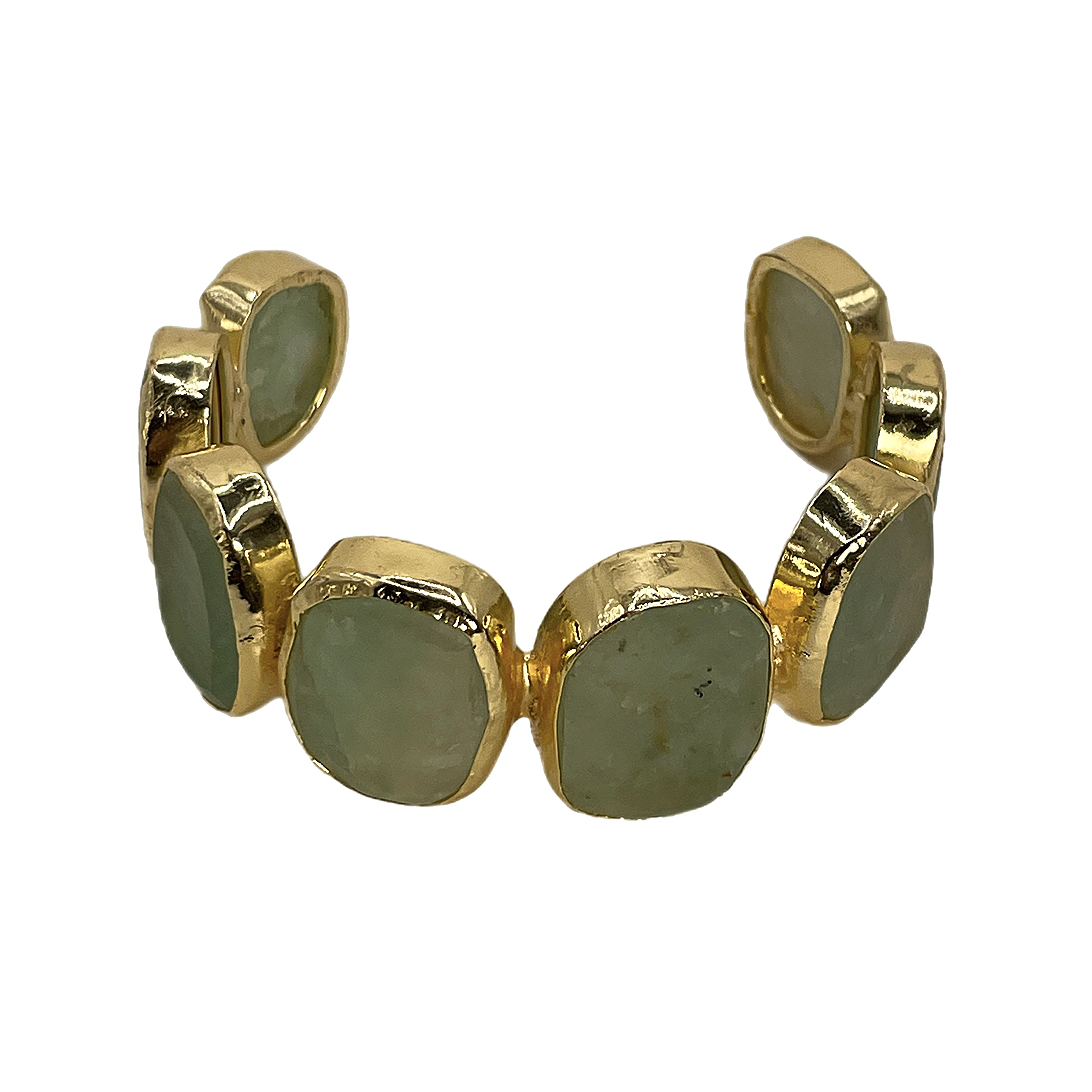 Позолоченный браслет из меди, украшен необработанным натуральным камнем