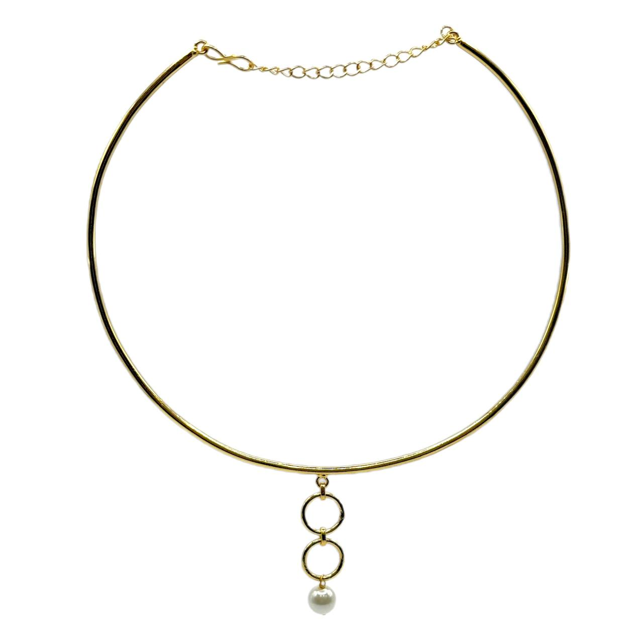 Колье чокер Victory выполнено из ювелирного сплава и покрыто золотом. Чокер дополнен акцентной жемчужиной посередине.