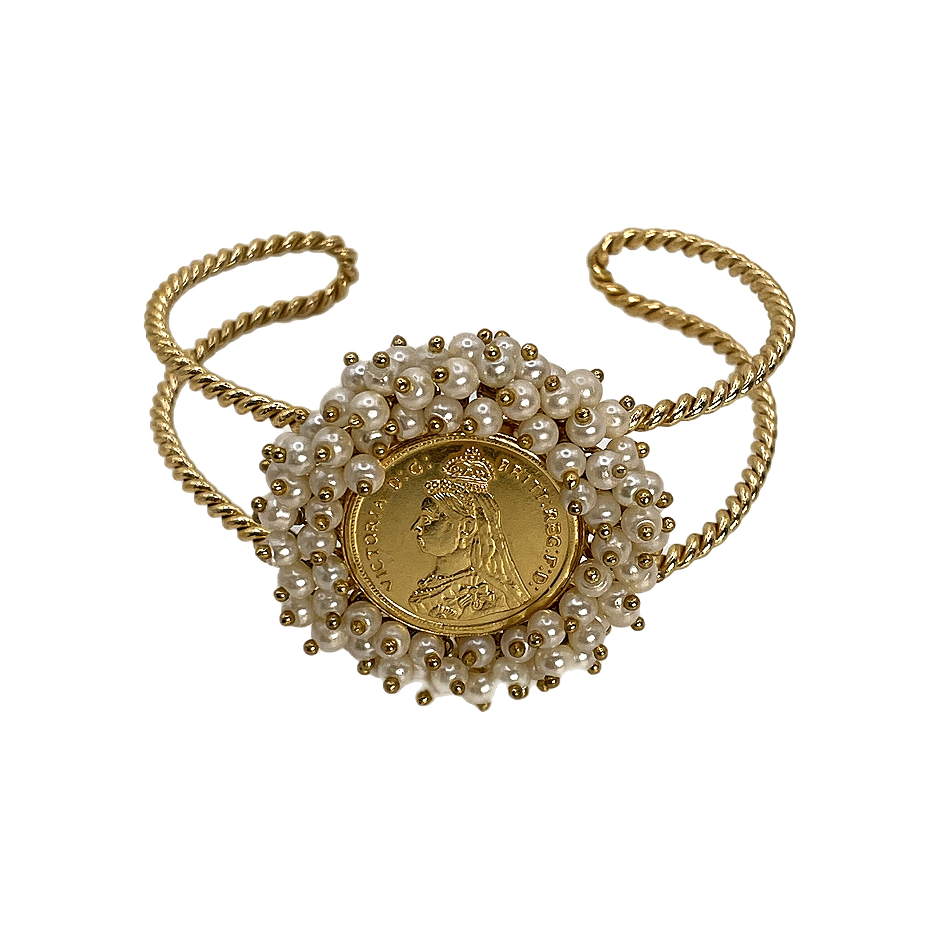 Позолоченный браслет из меди, украшенный жемчужными бусинами