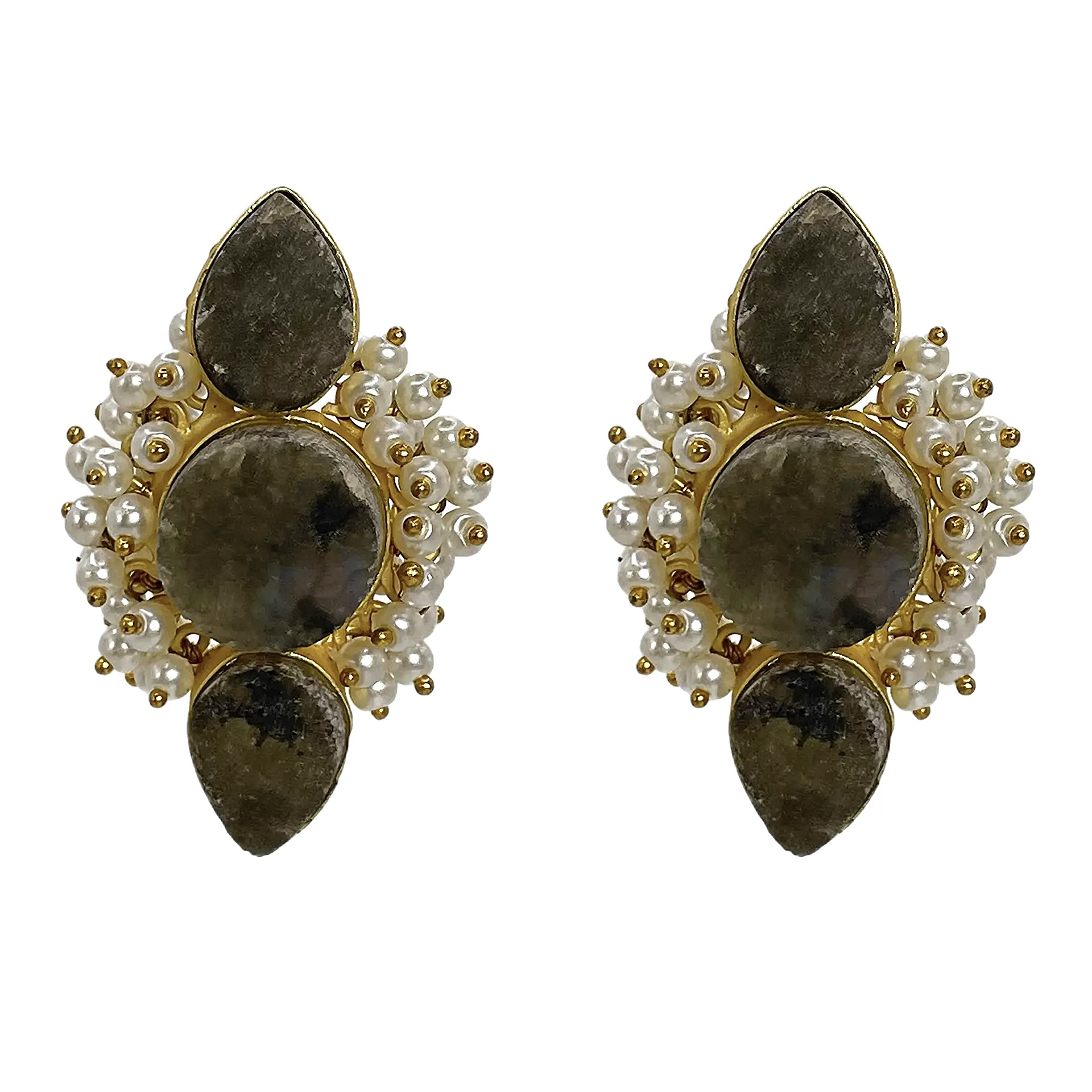 Позолоченные серьги из латуни, с натуральным камнем и жемчужными бусинами