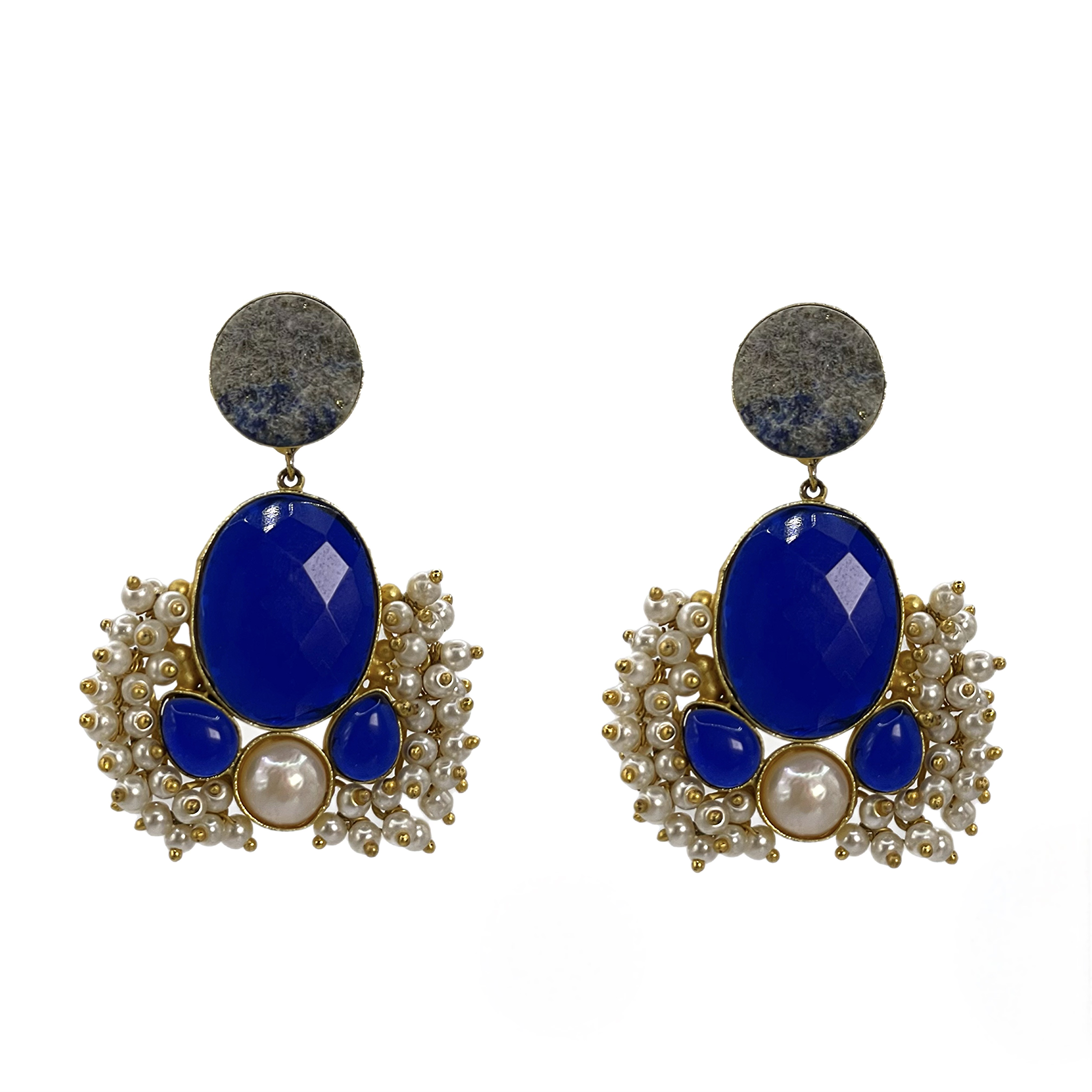 Позолоченные серьги из необработанного натурального камня и жемчужными бусинами