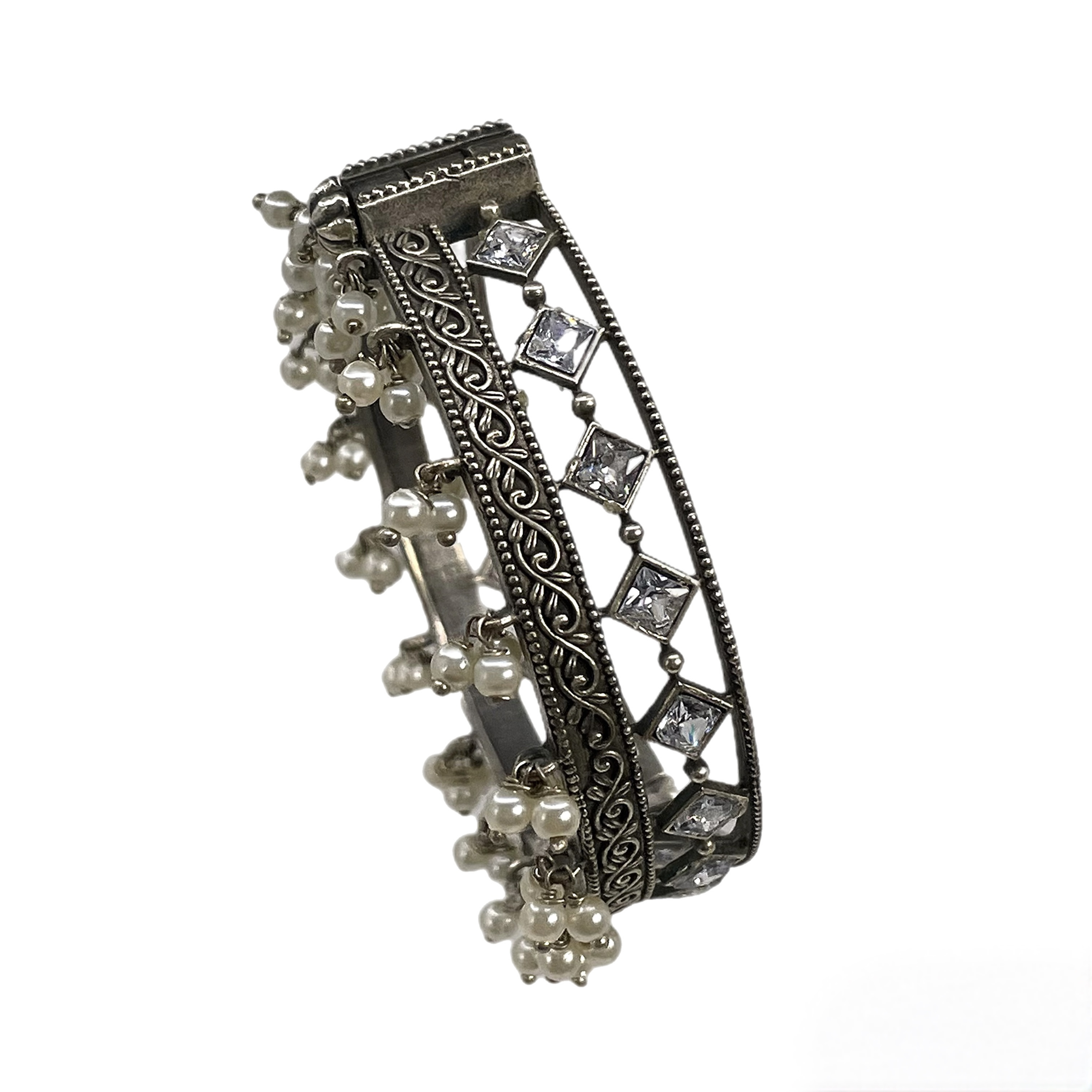 Браслет из стали с жемчужными бусинами и цирконием
