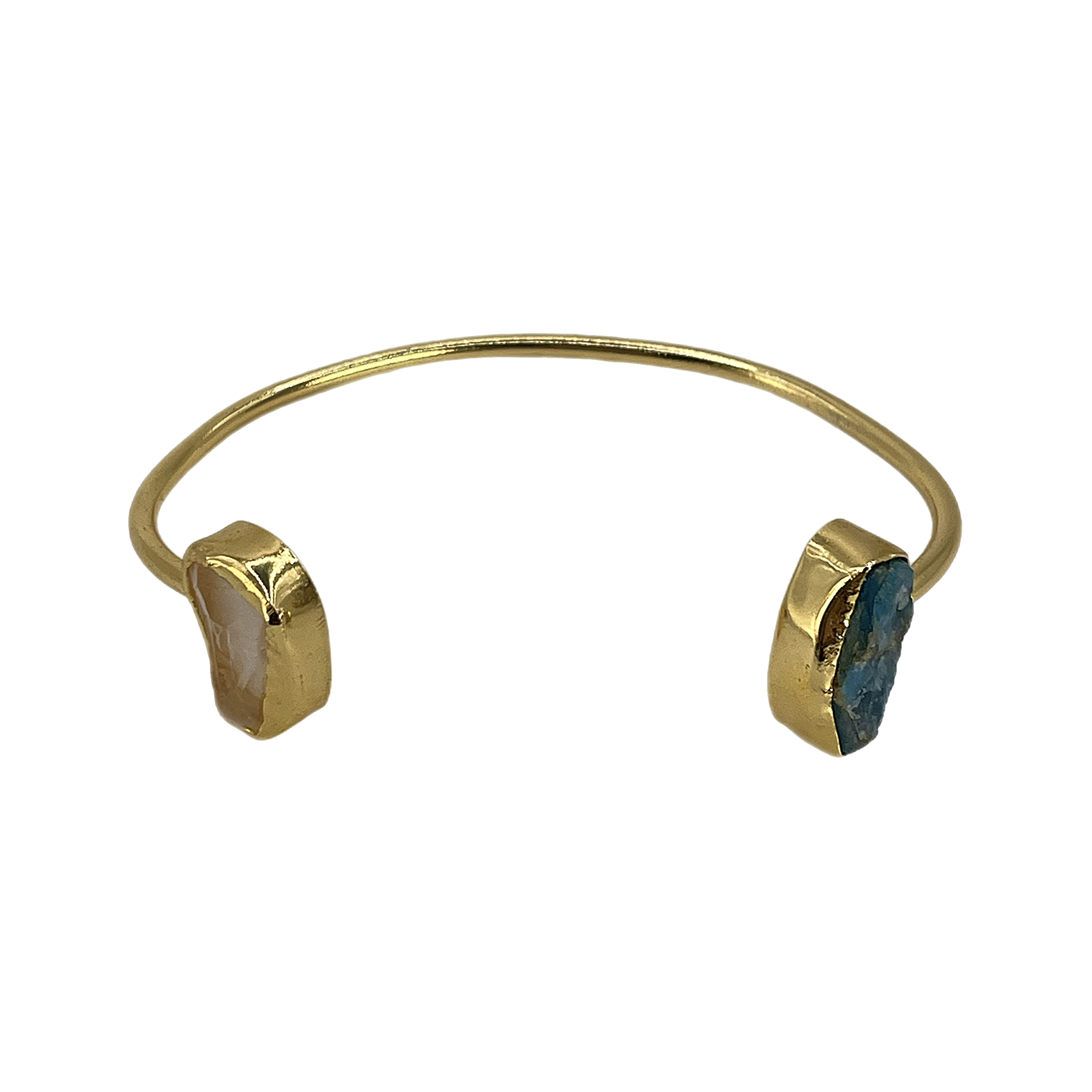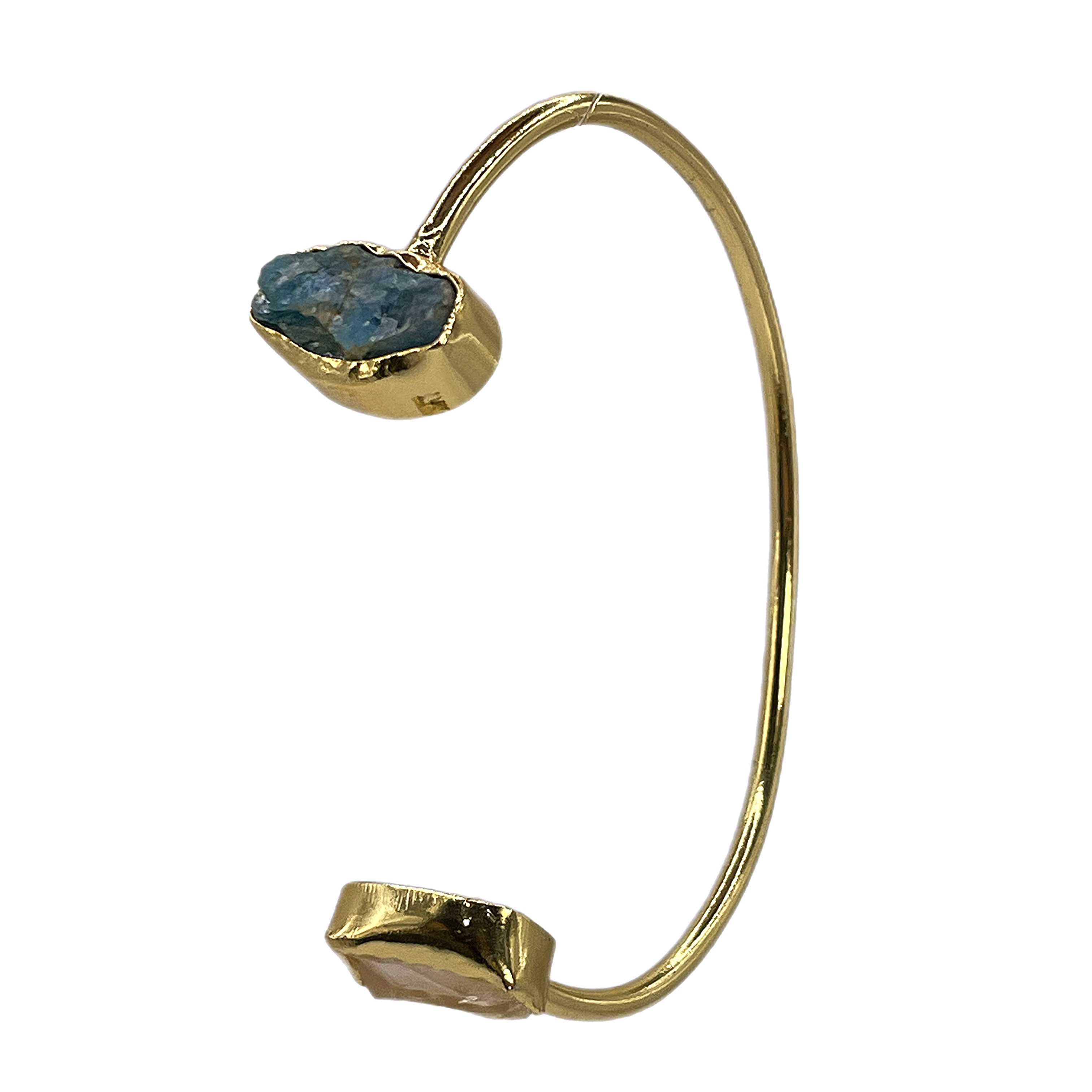 Позолоченный браслет из меди и натуральными, необработанными камнями