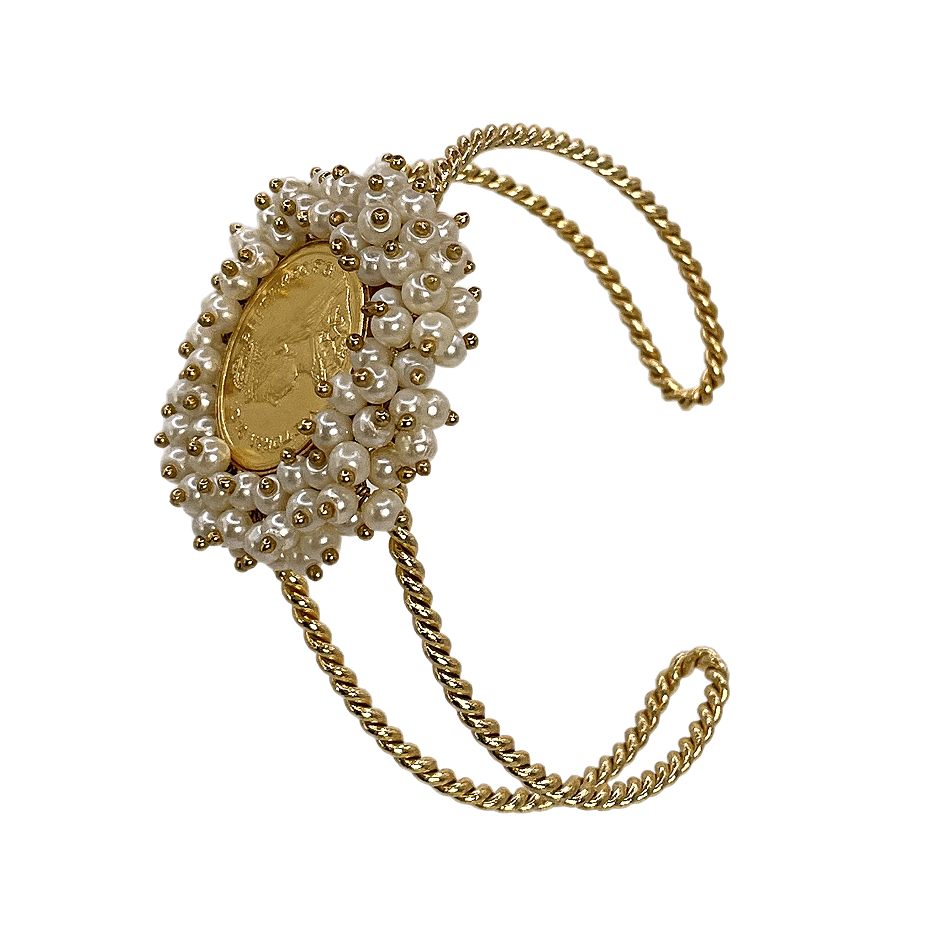 Позолоченный браслет из меди, украшенный жемчужными бусинами