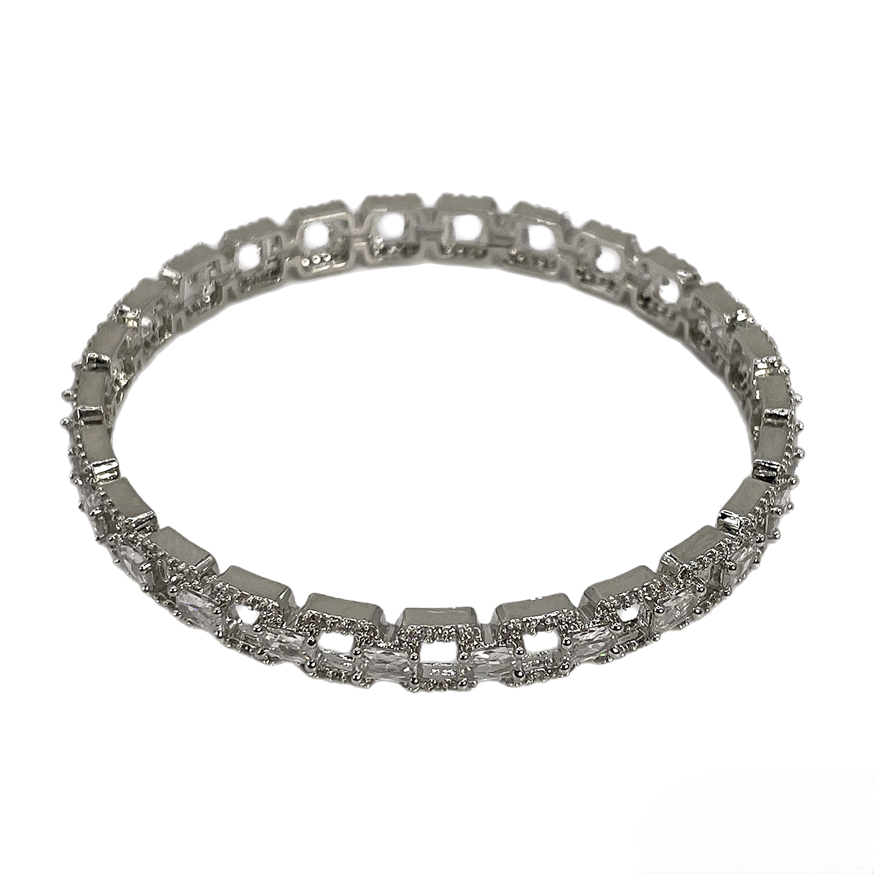 Серебристый браслет из ювелирной стали, украшен стразами кубического циркония