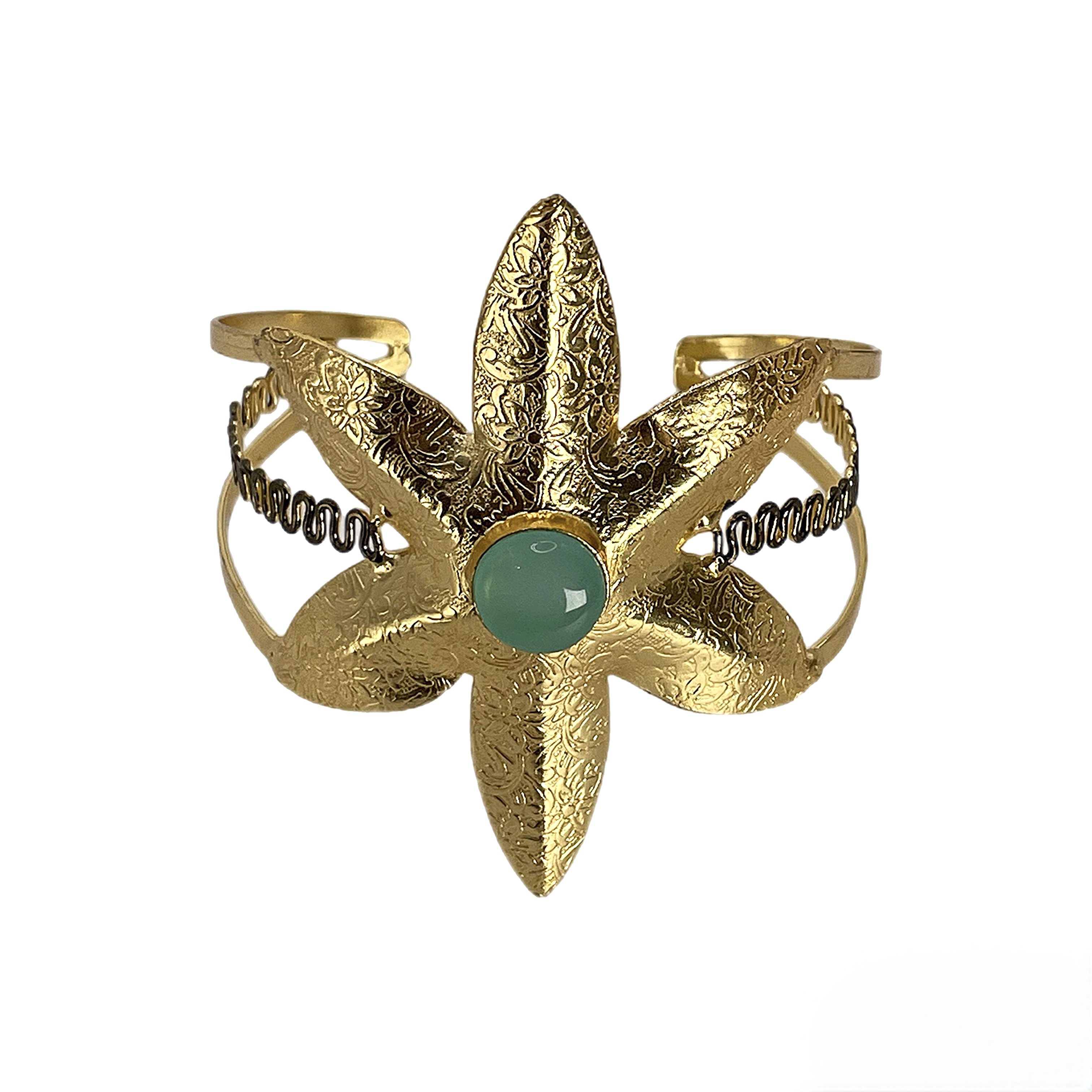 Позолоченный браслет в виде цветка, из меди, с камнем дуплетом