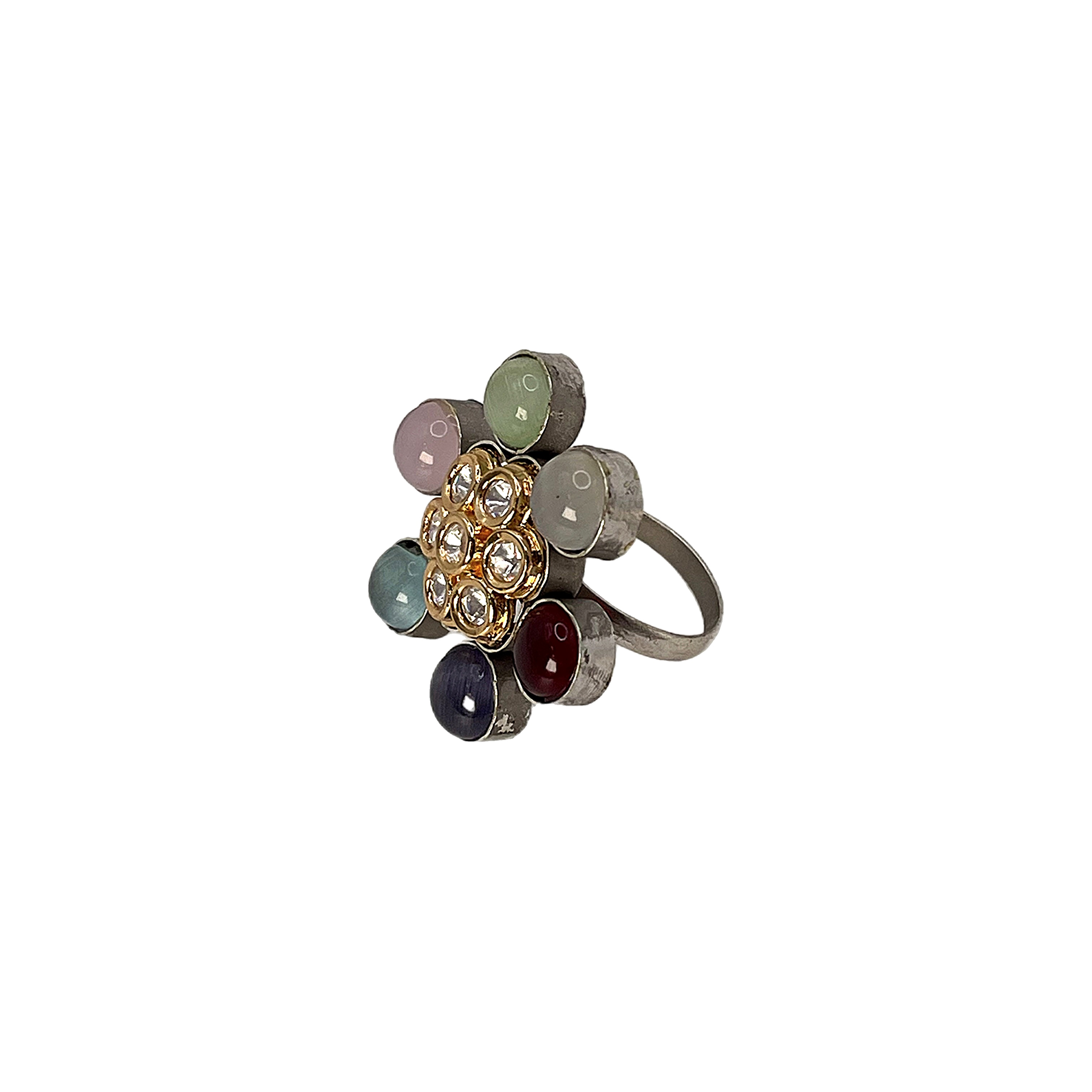 Кольцо из ювелирной стали, с цирконием и натуральными камнями