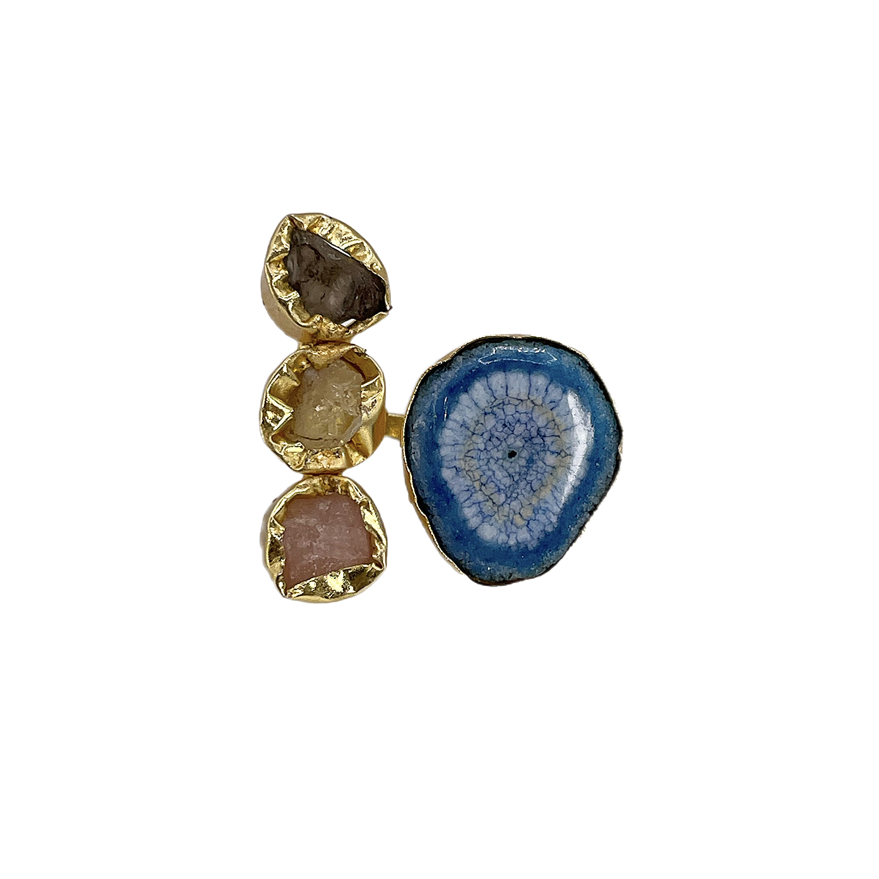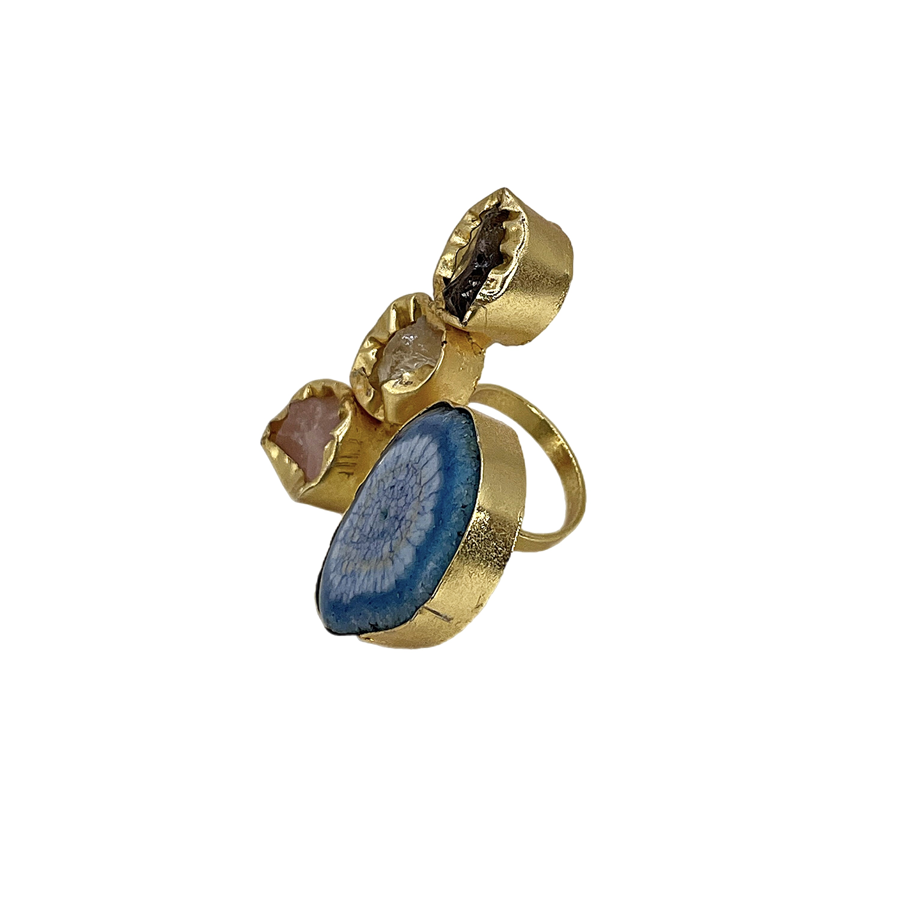 Позолоченное кольцо из меди, с натуральными необработанными камнями