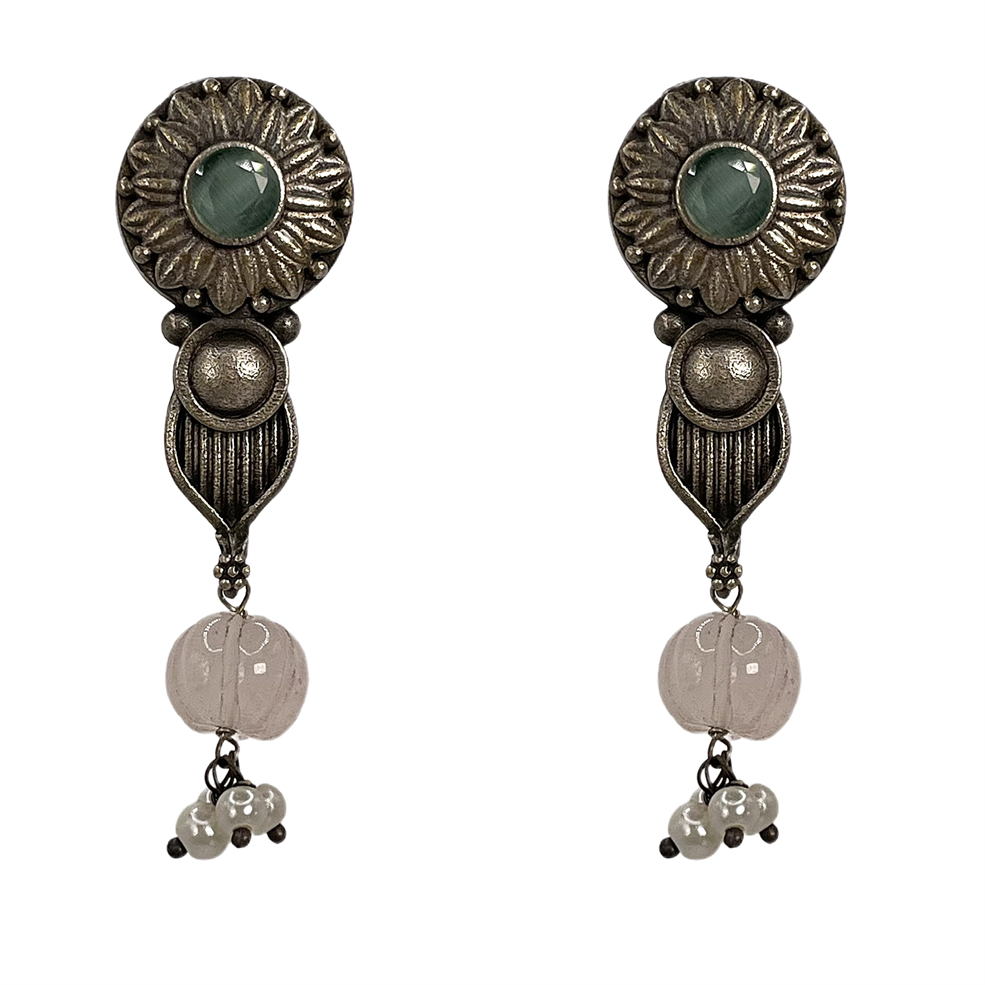 Серьги из ювелирной стали, с натуральным камнем и жемчужными бусинами
