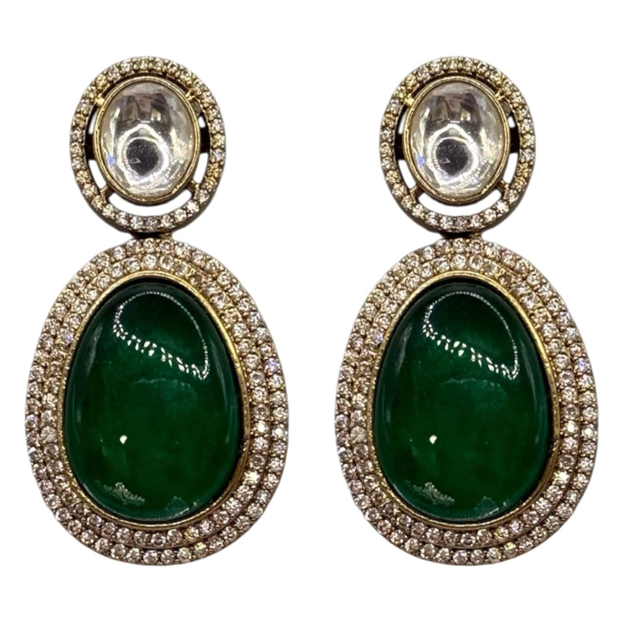 Серьги из латуни с зелеными и белыми камнями