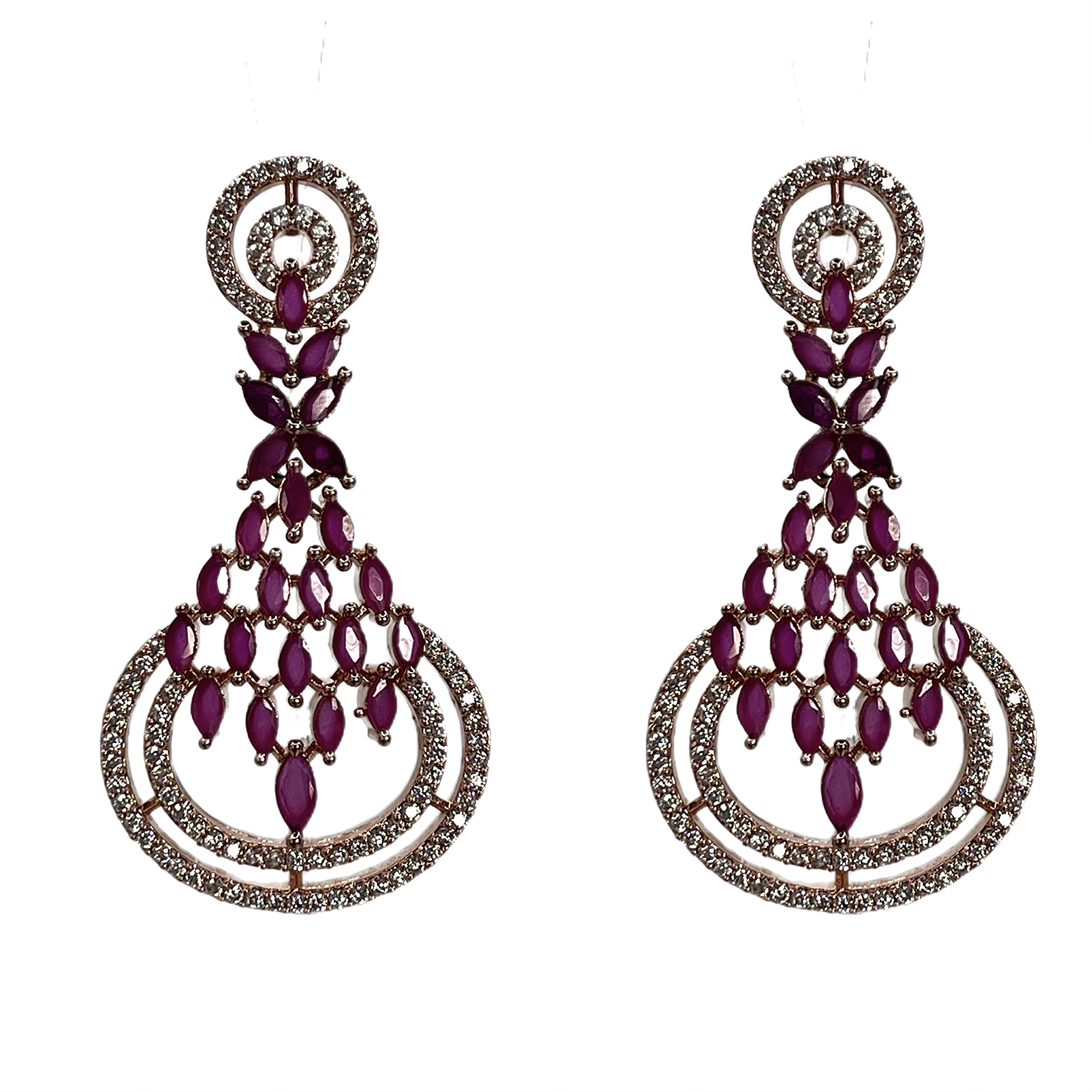 Позолоченные серьги из меди, с розовыми кристаллами